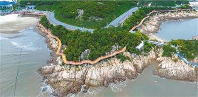 在浙江省寧波市象山縣松蘭山沿海島礁上,濱海慢行步道蜿蜒曲折。