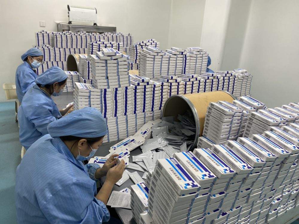 河北東風藥業(yè)有限公司的工人們正在進行藥品外包裝工作。(受訪單位供圖)