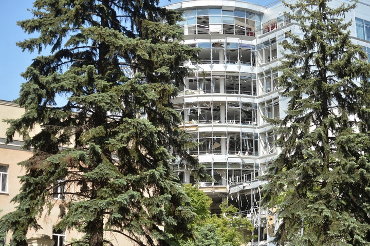 這是6月1日在烏克蘭哈爾科夫市拍攝的被炸毀的樓房。新華社發(fā)(彼得·德魯克攝)