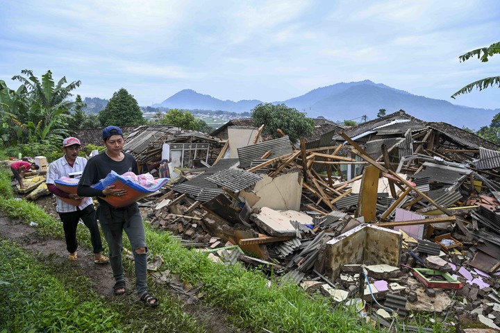 11月26日,印度尼西亞西爪哇省展玉的居民走過地震留下的廢墟。新華社發(fā)(祖卡南攝)