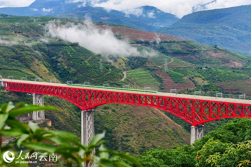 復興號動車組列車馳騁在中老鐵路玉溪元江特大橋上。徐章位攝