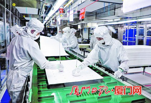 廈門(mén)深入實(shí)施先進(jìn)制造業(yè)倍增計(jì)劃。圖為冠捷科技生產(chǎn)線。(記者張奇輝/攝)