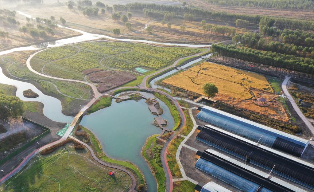 2020年10月,運(yùn)河路沿線南孫莊鎮(zhèn)一處生態(tài)農(nóng)業(yè)園區(qū)(無(wú)人機(jī)照片)。(受訪單位供圖)