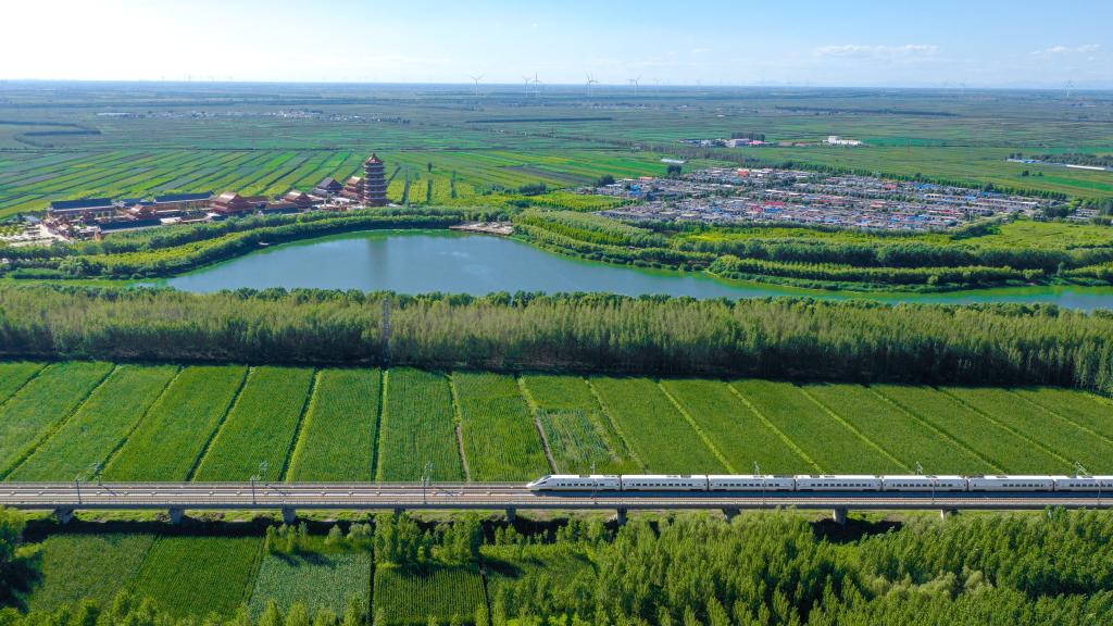 2022年8月,運(yùn)河路沿線東田莊鄉(xiāng)風(fēng)光(無(wú)人機(jī)照片)。(受訪單位供圖)