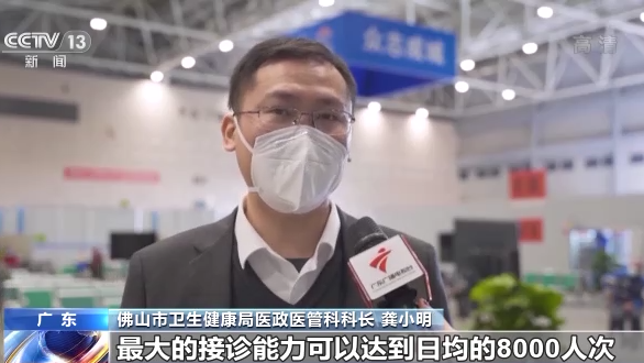 佛山市衛(wèi)生健康局醫(yī)政醫(yī)管科科長 龔小明:最大的接診能力可以達到日均8000人次,目前我們總體設計的是開放20個診室,第一批是開放10個,包括有內(nèi)科、兒科、急診,還有護理、藥學,總共150多名醫(yī)護人員來進駐。