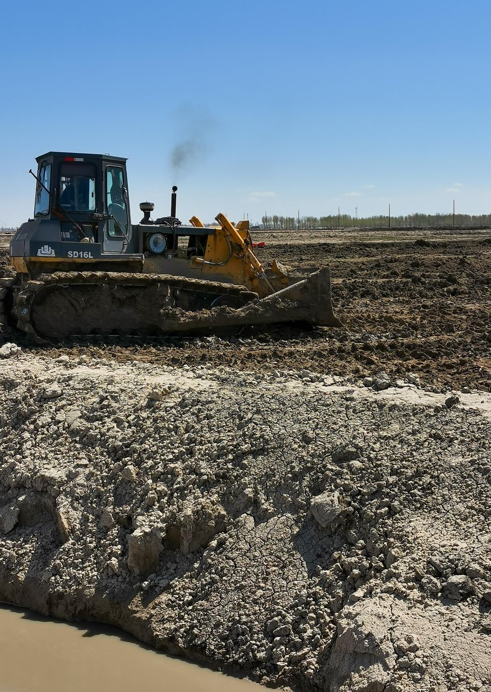 2022年2月22日,在吉林省松原市乾安縣余字鄉(xiāng)歲字村土地整治現(xiàn)場,工作人員操作推土機(jī)進(jìn)行土地粗平作業(yè)。新華社記者 王帆 攝