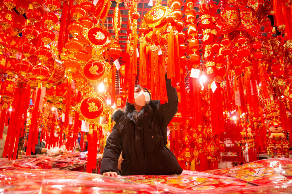 ↑ 1月28日,市民在南京一家商貿(mào)城內(nèi)選購春節(jié)飾品。新華社發(fā)(蘇陽攝)