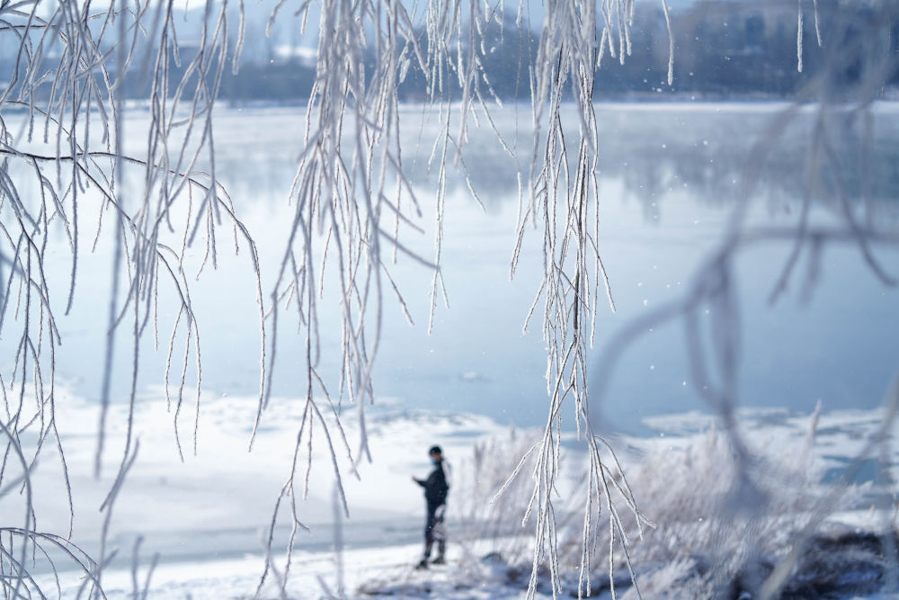 ↑ 這是2月22日在吉林市松花江邊拍攝的霧凇美景。新華社記者 顏麟蘊(yùn) 攝