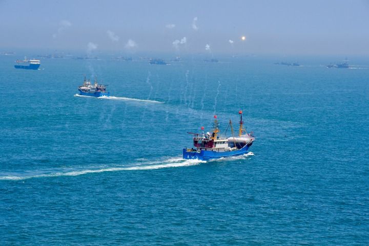 ↑ 8月16日,福建省福州市連江縣苔菉中心漁港開漁出海的漁船在海面航行。新華社記者 姜克紅 攝