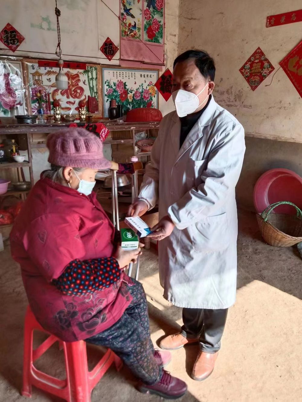 村衛(wèi)生室醫(yī)生上門為老人送藥。(受訪者供圖)