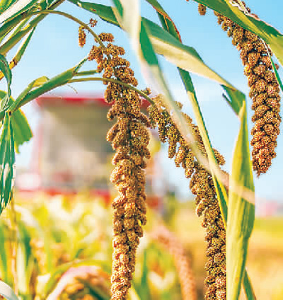 在山東省鄒平市西董街道一種植基地拍攝的谷子(九月二日攝)。