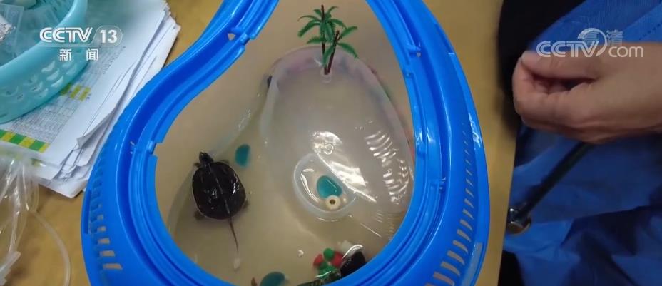 在醫(yī)生辦公室的一張桌上,孔小行拿出了一個寵物盒,里面的兩只小烏龜是過去曾經(jīng)住院孩子留下的。