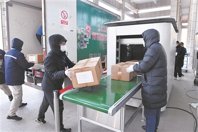原報考省份試卷押運至河南中轉(zhuǎn)站。教育部新聞辦供圖