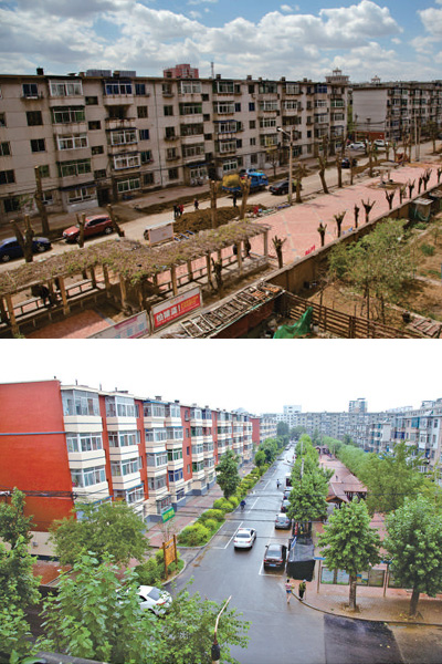 遼寧省沈陽市皇姑區(qū)三臺子牡丹社區(qū)。上圖為改造前的小區(qū)面貌,下圖為改造后的小區(qū)環(huán)境。辛陽 唐正元 攝影報道