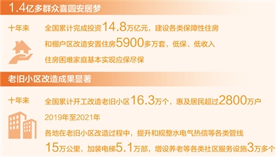 習(xí)近平總書記指出,老舊小區(qū)改造是提升老百姓獲得感的重要工作,也是實施城市更新行動的重要內(nèi)容。2019年,我國將城鎮(zhèn)老舊小區(qū)改造納入保障性安居工程。2019年至2021年,全國累計新開工改造城鎮(zhèn)老舊小區(qū)11.4萬個,惠及居民2000多萬戶,從“墻面斑駁、線纜散亂”到“立面翻新、綠化提升”,老舊小區(qū)舊貌換新顏。