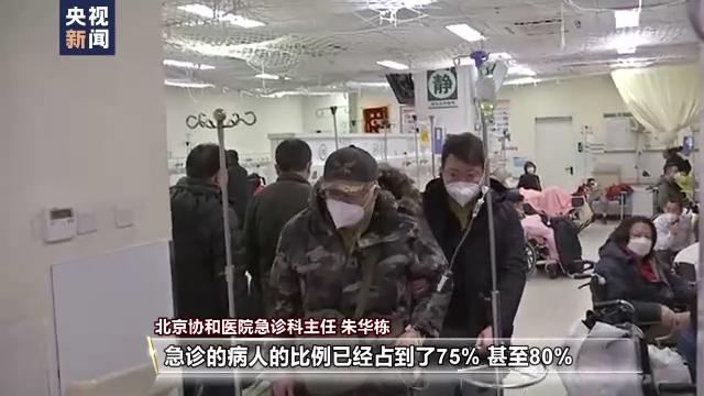 北京協(xié)和醫(yī)院急診科主任 朱華棟:我從醫(yī)大概有30來(lái)年了,可以說(shuō)是最困難的一個(gè)時(shí)候。病人量多,還有危重程度也超過(guò)平時(shí)。像在以往的話(huà),一、二、三級(jí)占的比例平均平時(shí)的話(huà)也就是在50%左右。最近這幾天我們監(jiān)測(cè)到一、二、三級(jí)這些急診的病人比例已經(jīng)占到了75%,甚至80%,危重病人的比重高,可以說(shuō)這是一個(gè)前所未有的挑戰(zhàn)。