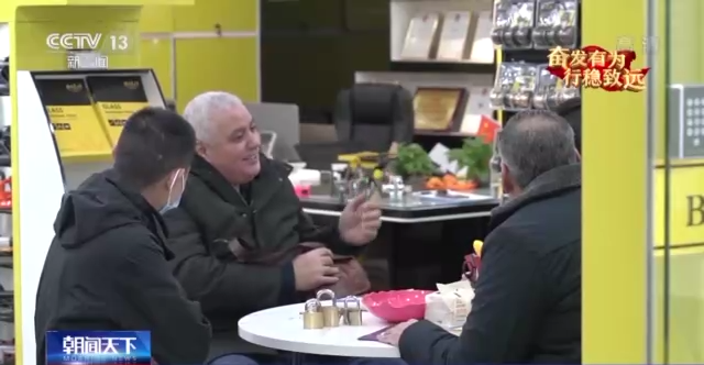 老朋友三年未見,除了激動地暢聊,尼扎爾·阿爾德雷姆利還有正事要趕緊辦。很快他定下了玻璃鎖、門拉手等產(chǎn)品,價值金額50萬元。尼扎爾·阿爾德雷姆利說他這次只在中國待1個月,他把行程安排得相當緊湊,這幾天,他要在義烏拜訪日用百貨、五金廚具等領域的多家商鋪,忙完采購,他還要接著前往廣州的工廠。