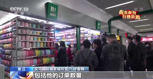 義烏國際商貿(mào)城經(jīng)營戶 葉春曉:往年這個時候,我們店里所有的單品都是按照5至10萬個的數(shù)量在儲備,但是目前按照客戶詢單的次數(shù)、包的訂單數(shù)量,我們已經(jīng)超出以往的2至3倍的儲備量在儲備。接下來對于外來采購商回到市場的情況非常有信心。