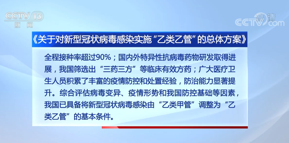 國務(wù)院聯(lián)防聯(lián)控機(jī)制昨天發(fā)布了《關(guān)于對新型冠狀病毒感染實(shí)施“乙類乙管”的總體方案》?!斗桨浮分赋?,我國已具備將新型冠狀病毒感染由“乙類甲管”調(diào)整為“乙類乙管”的基本條件。