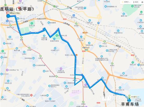 起終站:羊甫車(chē)場(chǎng)——昆明站(永平路)