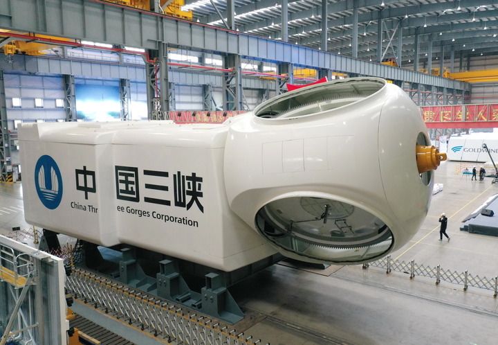 這是11月23日在福建三峽海上風(fēng)電國(guó)際產(chǎn)業(yè)園下線的16兆瓦海上風(fēng)電機(jī)組。新華社記者 林善傳 攝