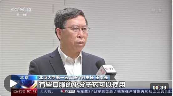 北京大學(xué)第一醫(yī)院感染科主任 王貴強(qiáng):目前抗病毒治療有些口服的小分子藥可以使用,我們強(qiáng)調(diào)是早期使用,即發(fā)病以后或者是感染明確診斷以后盡早使用,一般強(qiáng)調(diào)是5天之內(nèi)使用效果更好。5天以后也不是不能用,但是效果有限。