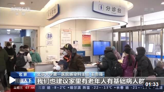 北京大學(xué)第一醫(yī)院感染科主任 王貴強(qiáng):幾個很重要的指標(biāo),一個呼吸的頻率,如果呼吸特別快,有氣短,超過30次的每分鐘,那就要到醫(yī)院去看病。我們也建議家里有老年人、基礎(chǔ)病人群的家里備一個指氧儀,這個指氧儀很簡單,就測一下,如果低于93了,那就重癥的表現(xiàn)了,如果低于95、94的,那也需要早期的吸氧。