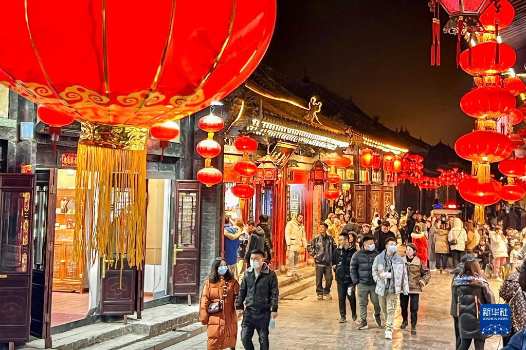 這是平遙古城內(nèi)明清街夜景(2022年2月7日攝)。新華社發(fā)(梁生仁攝)