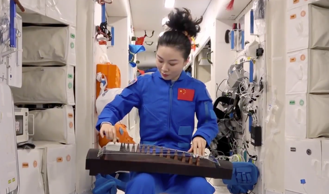 王亞平在太空用古箏演奏《茉莉花》。
