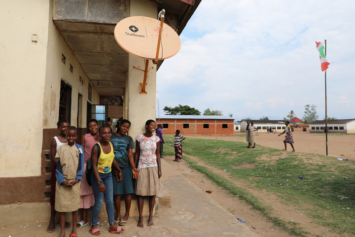 2022年10月31日在布隆迪布瓊布拉鄉(xiāng)村省穆蒂姆布齊一村莊拍攝的村民和衛(wèi)星電視接收器?!叭f(wàn)村通”項(xiàng)目是2015年中非合作論壇約翰內(nèi)斯堡峰會(huì)提出的中非人文領(lǐng)域合作舉措之一,旨在為非洲國(guó)家的1萬(wàn)個(gè)村莊接入衛(wèi)星數(shù)字電視信號(hào)。新華社記者 董江輝 攝