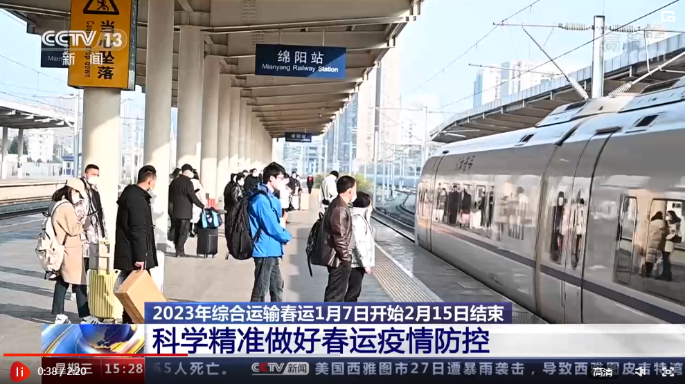 央視網(wǎng)消息:《2023年綜合運(yùn)輸春運(yùn)疫情防控和運(yùn)輸服務(wù)保障總體工作方案》要求各地制定并落實(shí)春運(yùn)新型冠狀病毒感染疫情防控指南,全面落實(shí)疫情防控優(yōu)化措施及“乙類乙管”各項(xiàng)措施。