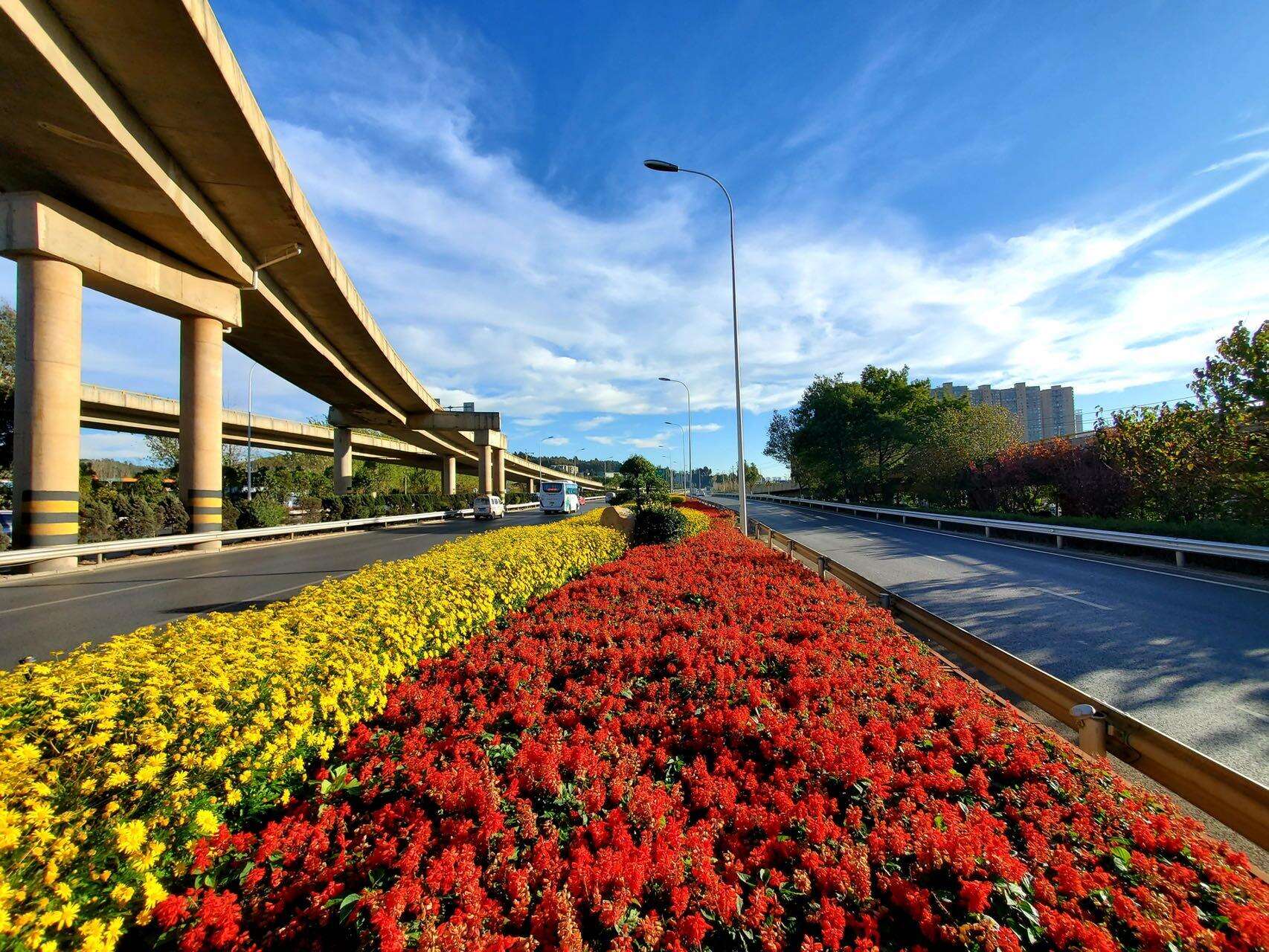 冬日暖陽,驅(qū)車行駛在昆玉高速公路鳴泉至馬金鋪段上,道路寬敞整潔,路旁花開正盛,得到許多駕乘人員的點(diǎn)贊。