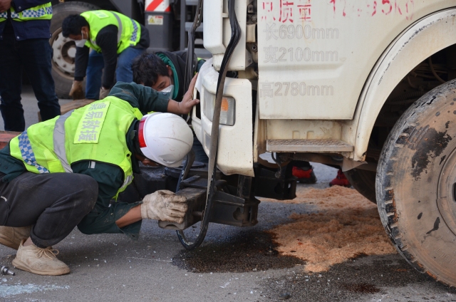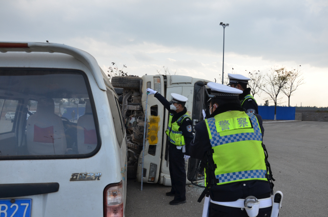 接到報(bào)警后,縣公安局交通警察大隊(duì)立即指揮就近警力趕赴事故現(xiàn)場(chǎng),開展現(xiàn)場(chǎng)交通秩序管控、事故現(xiàn)場(chǎng)警戒等先期處置工作,并第一時(shí)間啟動(dòng)事故應(yīng)急處置預(yù)案,迅速將現(xiàn)場(chǎng)情況通報(bào)交警、路政、消防、醫(yī)療等部門,立即趕往現(xiàn)場(chǎng)處置。消防救援隊(duì)伍和醫(yī)療救護(hù)人員陸續(xù)到達(dá)事故現(xiàn)場(chǎng),消防人員利用破拆工具對(duì)被困傷員實(shí)施解救,急救人員對(duì)被解救出來的兩名傷員進(jìn)行外傷包扎、骨折部位固定等有效救治,并用擔(dān)架將傷員送上救護(hù)車送往醫(yī)院救治。隨后,交警大隊(duì)事故處理中隊(duì)、路政對(duì)事故現(xiàn)場(chǎng)進(jìn)行勘查,勘查結(jié)束后,清障車輛到達(dá)現(xiàn)場(chǎng),對(duì)肇事車輛進(jìn)行拖移,清理事故現(xiàn)場(chǎng),確保道路恢復(fù)暢通。