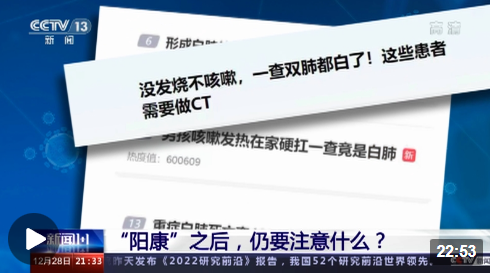 新冠感染高峰,病毒引發(fā)的肺炎值得關(guān)注。什么樣的肺炎會(huì)發(fā)展成白肺?我們需要談白色變嗎?轉(zhuǎn)陰之后的肺炎,又是怎么回事兒?新冠病毒可能誘發(fā)心肌炎,哪些癥狀值得警惕?運(yùn)動(dòng)和飲酒,陽(yáng)康后多久可以進(jìn)行? 《新聞1+1》連線(xiàn)北京佑安醫(yī)院感染綜合科主任醫(yī)師李侗曾,共同關(guān)注:新冠病毒感染,還要注意什么?