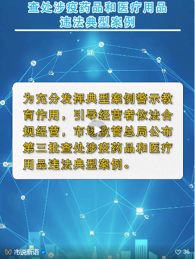 12月以來,市場監(jiān)管總局不斷加大監(jiān)管執(zhí)法力度,持續(xù)做好涉疫藥品和醫(yī)療用品穩(wěn)價(jià)保質(zhì)工作,立案查處一批違法行為,確保疫情防控措施調(diào)整轉(zhuǎn)段平穩(wěn)有序。為充分發(fā)揮典型案例警示教育作用,引導(dǎo)經(jīng)營者依法合規(guī)經(jīng)營,現(xiàn)公布第三批查處涉疫藥品和醫(yī)療用品違法典型案例。