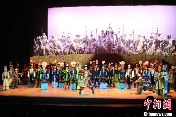 資料圖為2020年1月,歌舞劇《瑪納斯》在江蘇南京成功首演。 中新社發(fā) 克州歌舞團(tuán) 供圖