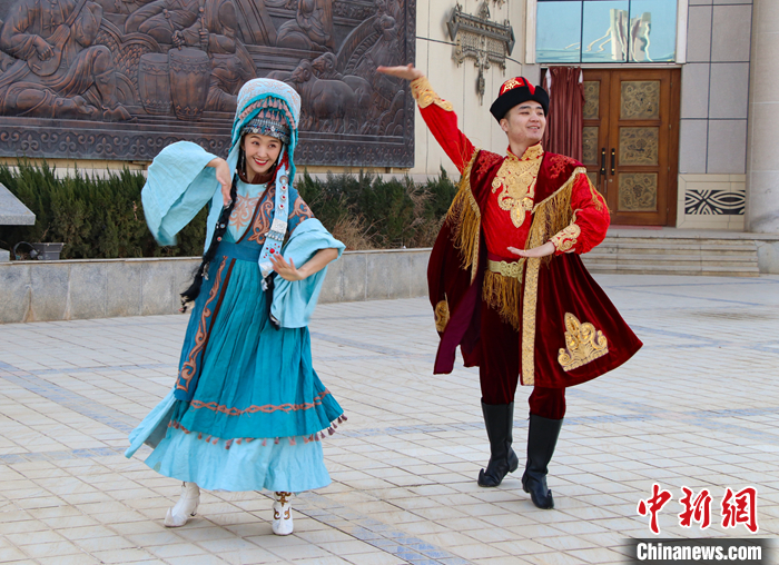 近日,中新社記者在克州的首府阿圖什市,探訪了克州歌舞團(tuán),該團(tuán)是中國唯一以柯爾克孜族為主體的專業(yè)藝術(shù)表演團(tuán)體。在排練廳里,巴合提白克·艾克拜正在和搭檔圖爾蓀阿依·薩拉馬提討論如何復(fù)排歌舞劇《瑪納斯》。按照計(jì)劃,該劇將于2023年3月赴北京演出。