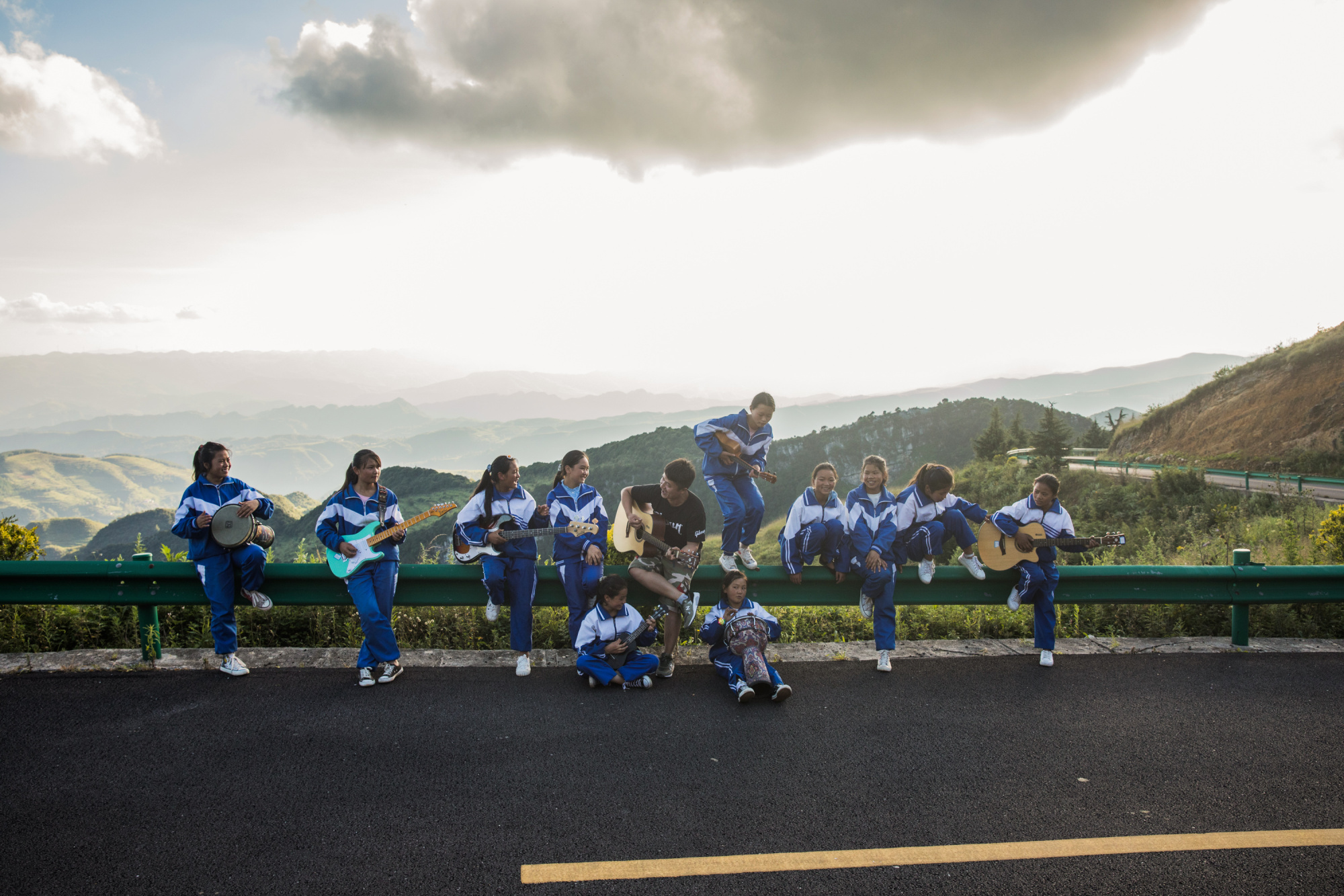 我自己琢磨著建立了一套并不太完善的學(xué)習(xí)體系,可以讓每個年級的孩子都能學(xué)習(xí)音樂。我看到了他們眼中的光。說真的,組建第一支樂隊時除了上課時間,周末甚至放假,我都會想盡一切辦法帶他們?nèi)ヅ啪殹?/p>