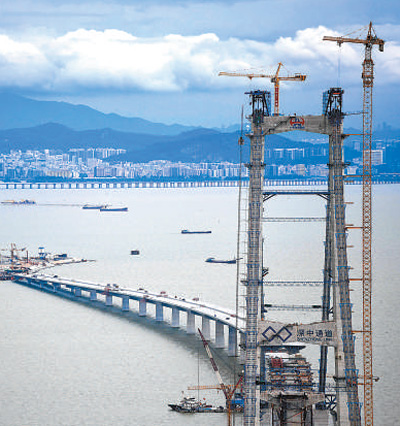 正在建設(shè)中的深中通道伶仃洋大橋。新華社記者 鄧 華攝