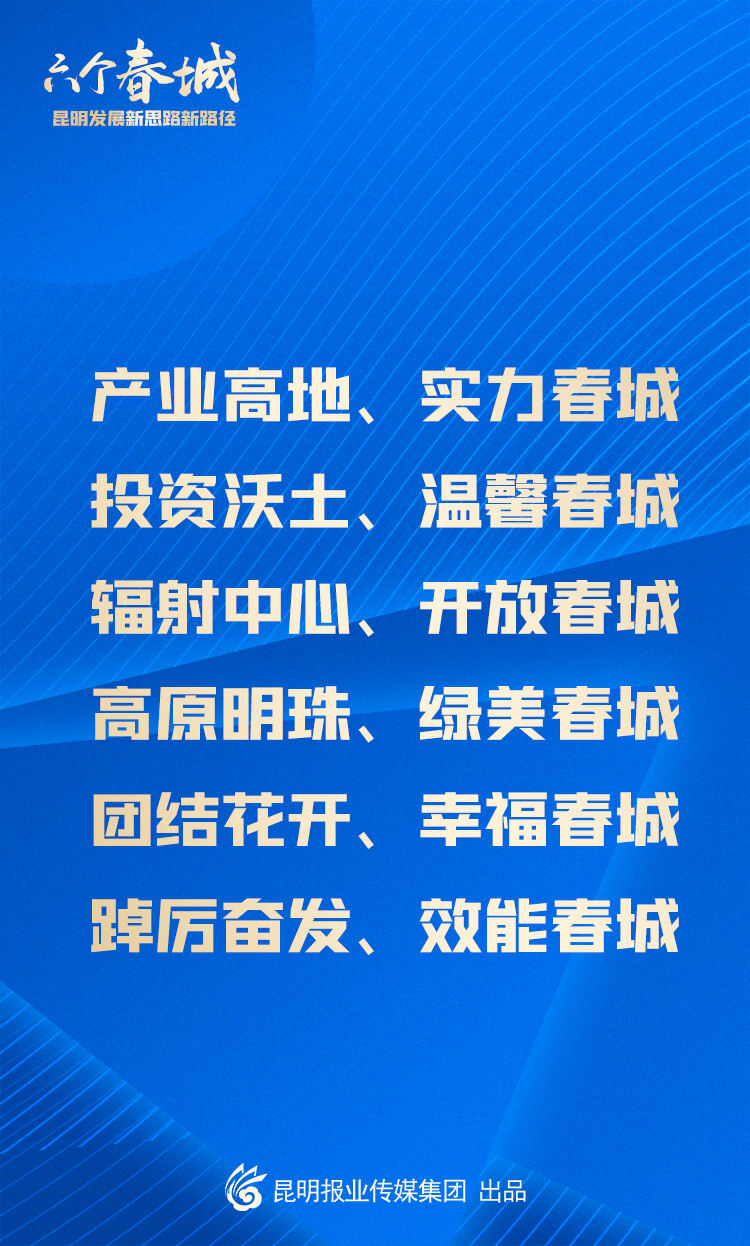 按照黨的二十大作出的重大部署和習(xí)近平總書記對(duì)云南提出的“一個(gè)跨越”“三個(gè)定位”重要指示精神,對(duì)標(biāo)省委對(duì)昆明當(dāng)好全省經(jīng)濟(jì)社會(huì)發(fā)展排頭兵的部署要求,昆明提出了著力打造“六個(gè)春城”的發(fā)展思路和發(fā)展路徑。