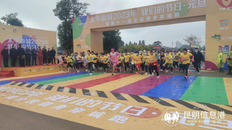 昆明信息港訊 記者楊雁 2023新年元旦,安寧市爭創(chuàng)全國文明典范城市“歸零再出發(fā)”系列活動暨太平新城2023年“我們的節(jié)日·元旦”第十一屆全民健身穿城跑活動正式啟動。上午9:30,隨著發(fā)令槍響起,男子組、女子組、家庭組跑者們陸續(xù)從起跑線出發(fā),以積極向上的奔跑姿態(tài),辭舊歲,開啟新年最美時光。