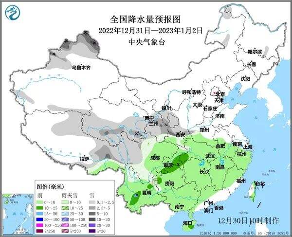 除了降溫外,這股跨年冷空氣還會(huì)給西北、西南等地帶來(lái)陰雨雪天氣。貴州西部、云南東北部等地的部分地區(qū)有雨夾雪,高海拔地區(qū)有凍雨。