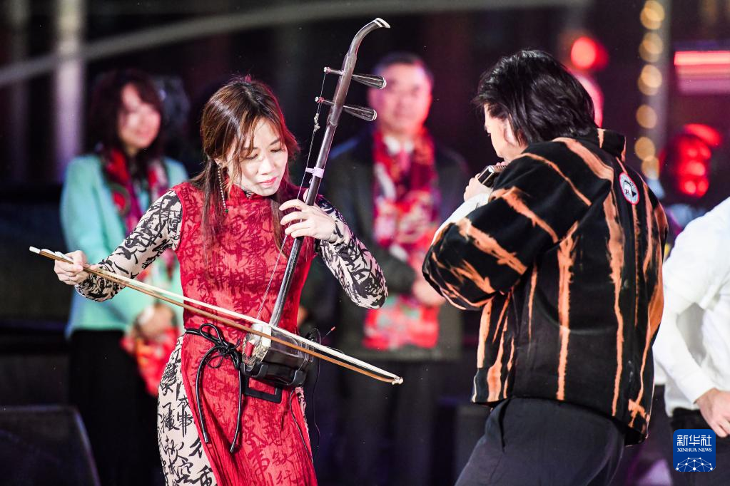 2022年12月31日,在美國紐約時(shí)報(bào)廣場,來自中國香港的藝術(shù)家在跨年倒計(jì)時(shí)活動(dòng)上表演。新華社發(fā)(朱子于攝)