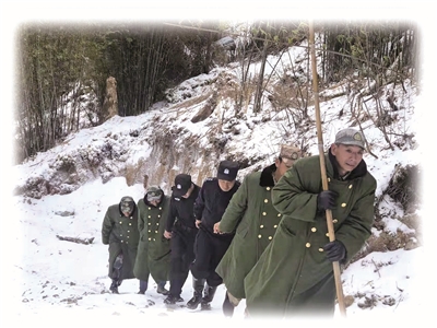 白茫茫的冰天雪地里,大家用雙腳踏出了一條通向抵邊防控卡點的路。所有人的腳都被雪水浸濕,但卻沒有人停下前進的腳步,因為大家都知道,雪山上還有一群更艱苦的戍邊人。