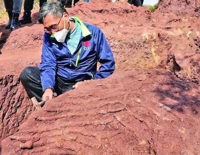 “這里有大中小3具恐龍的化石,屬于早侏羅世的蜥腳型類(lèi)的恐龍,距今約1.9億年,用兩條腿走路。恐龍化石如此集中,在世界上也并不多見(jiàn)。在元旦來(lái)臨之際一次發(fā)掘出3條恐龍,也是送給恐龍研究人員和恐龍愛(ài)好者的一份新年禮物。”發(fā)掘團(tuán)隊(duì)領(lǐng)隊(duì)、中國(guó)科學(xué)院古脊椎動(dòng)物與古人類(lèi)研究所研究員尤海魯告訴記者。