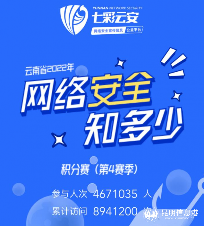網(wǎng)絡(luò)文明靠大家!七彩云安·云南省2022年網(wǎng)絡(luò)安全知多少積分賽 (第4賽季)上線