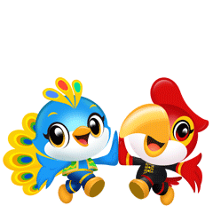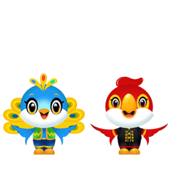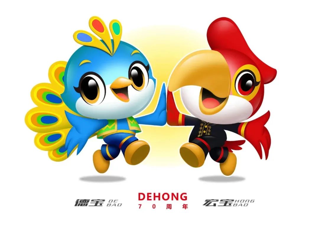 吉祥物分別命名為德寶(DEBAO)和宏寶(HONGBAO),代表“德宏之寶”的意思,一目了然地體現(xiàn)其地域?qū)傩浴?/p>