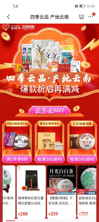 “云品薈”開展“居家嗨購·網(wǎng)上過年+線下直銷·年貨到家”主題活動,通過滿減、秒殺、限時(shí)搶、拼團(tuán)購、優(yōu)惠送等方式對年貨節(jié)商品進(jìn)行銷售。
