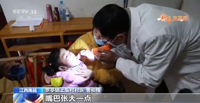 羅亭鎮(zhèn)上坂村村醫(yī) 曹和槐:嘴巴張大一點,扁桃體有點兒腫大。