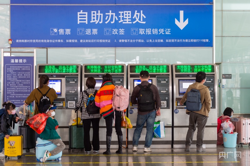 圖為旅客在廣州火車(chē)南站自助辦理乘車(chē)手續(xù)(央廣網(wǎng)記者 黃璐璐 攝)